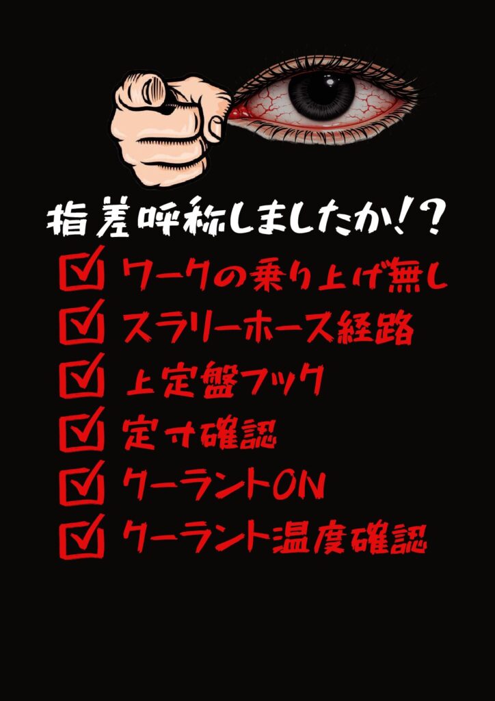 弊社ではこのトラブルの後にこちらを機械の前に貼りだしました。